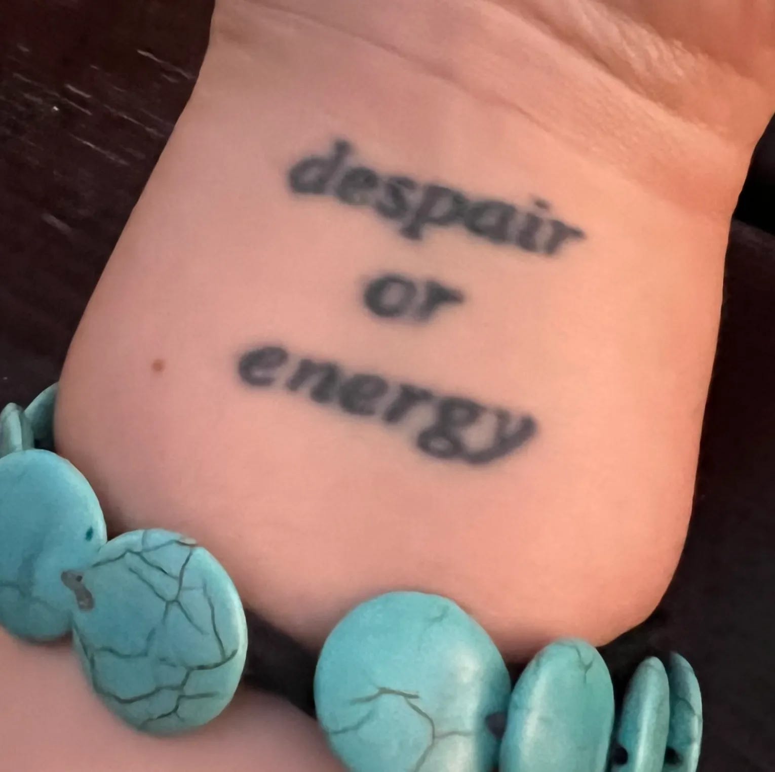 I have a tattoo on my left wrist: despair or energy. It’s from a letter written by the poet John Keats in 1819, a year of immense personal suffering. His brother had recently died of tuberculosis. Keats himself was sick, deeply in debt, creatively blocked and heartbroken. Amidst all of this, he wrote: