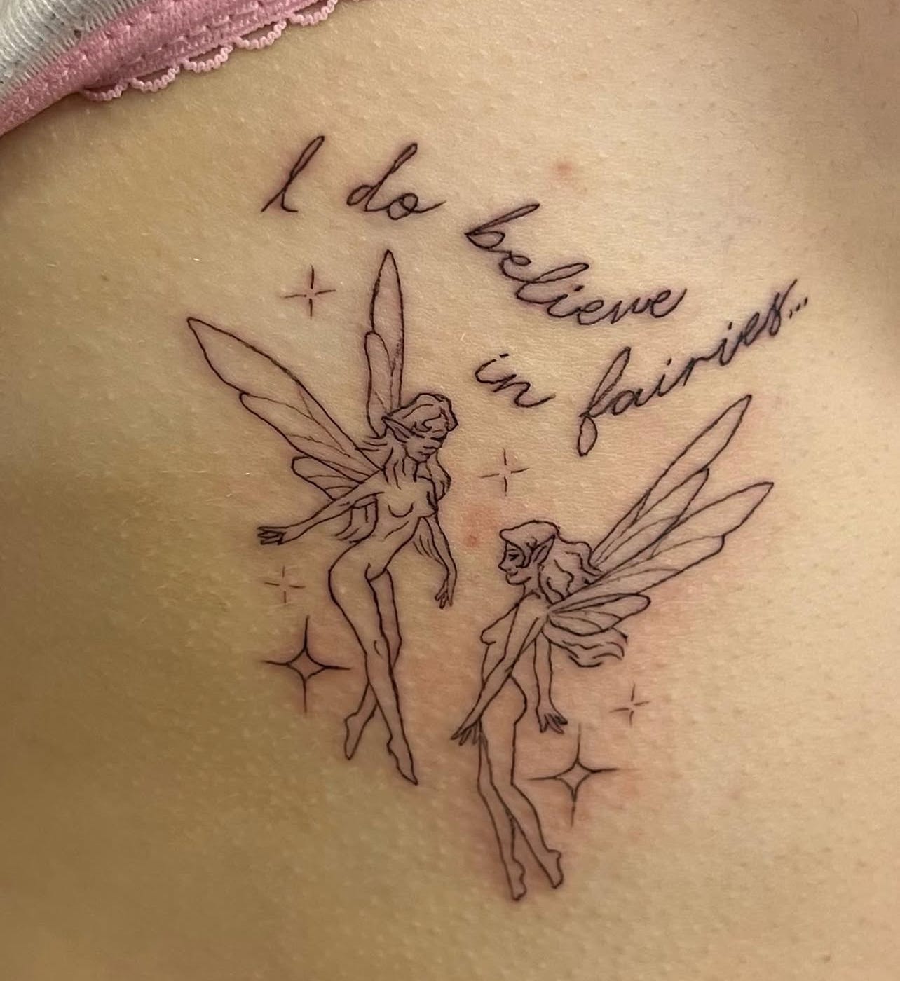 Another related tattoo I have is from the Peter Pan movie of a line I always loved: “I do believe in fairies.” The idea is that fairies need to be believed in to stay alive. If you stop believing, they fade. If you chant and believe hard enough, they flicker back into being.