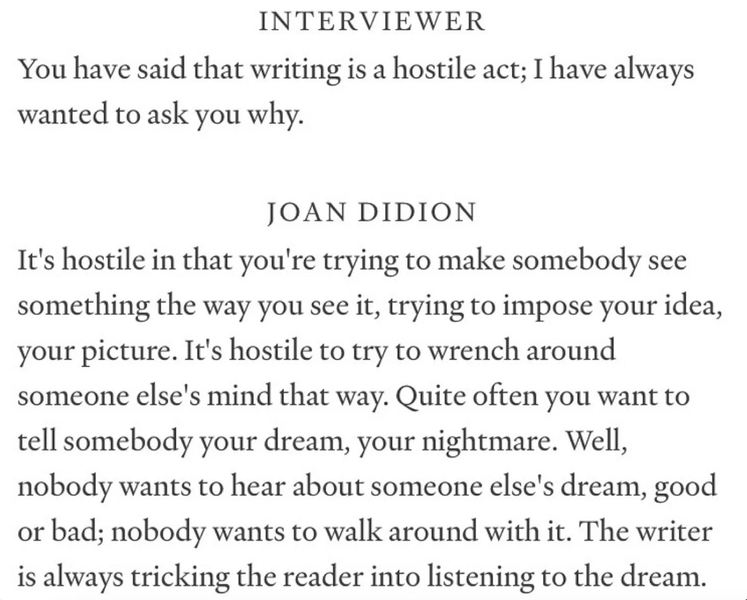But writing isn’t always gentle. Joan Didion once described writing is a hostile act: